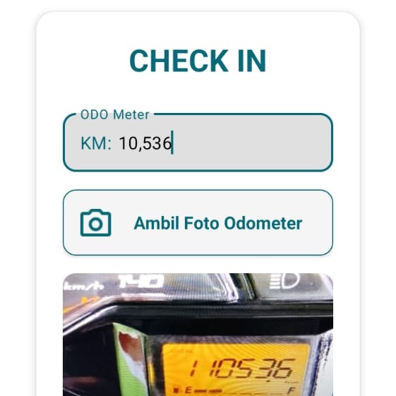Mulai hari dengan input angka dan foto speedometer sebagai absensi masuk.